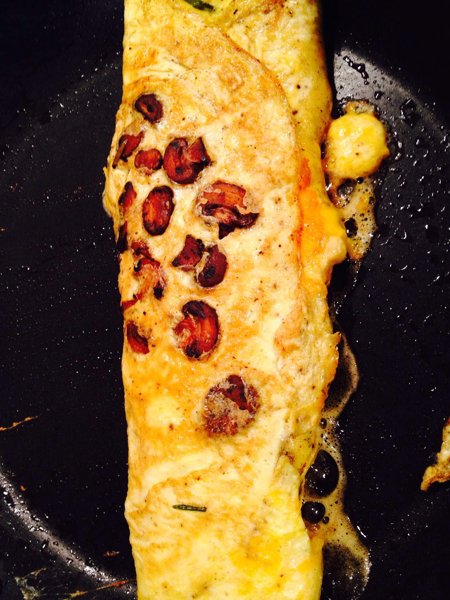 We let the cheese get good and melted. We both like it when it gets crusty with cheese around the edges and wherever it’s leaked out.  We fold both sides over a bit and voila! A delicious treat morning, noon or night.