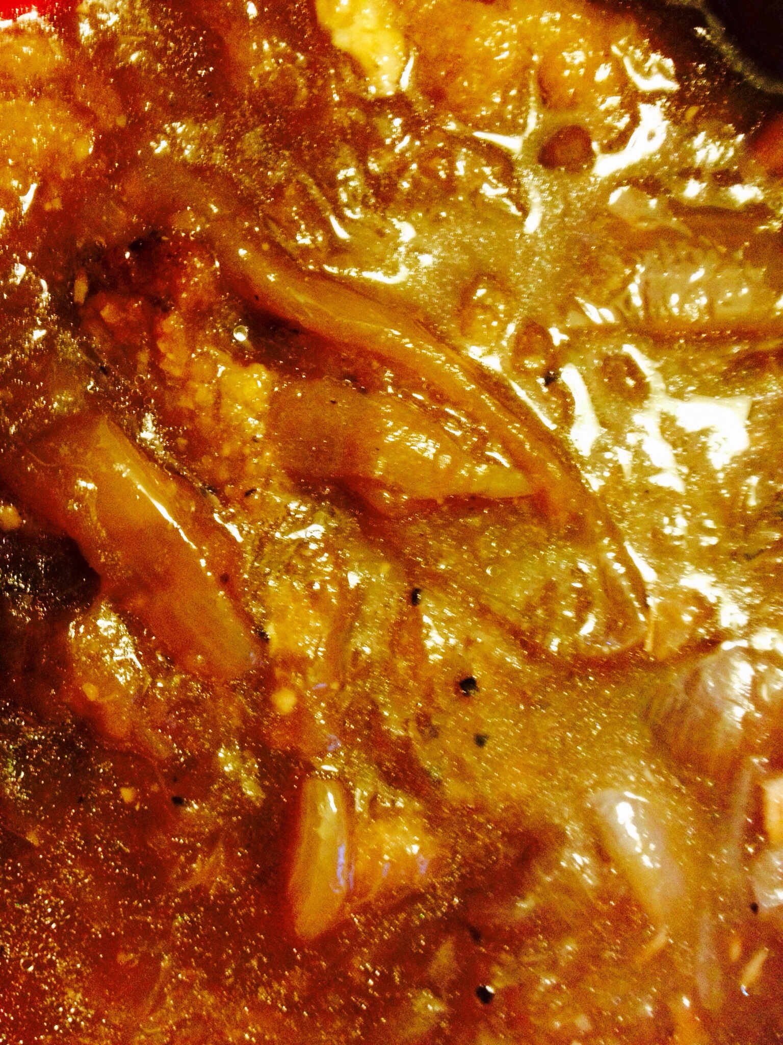 When you add the broth, they are kind of opaque instead of just translucent and shiny.