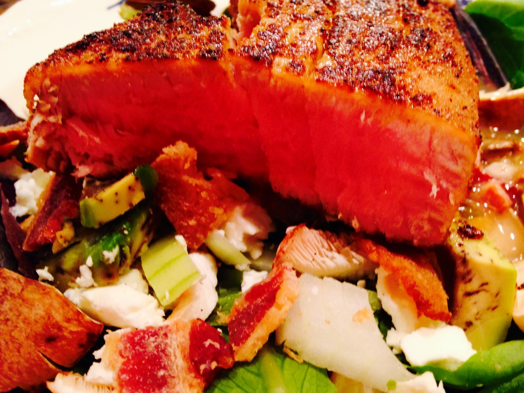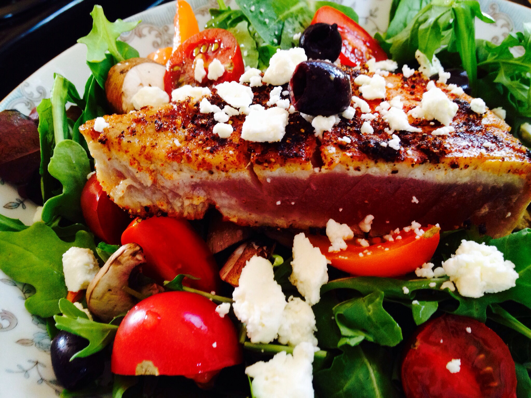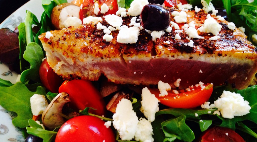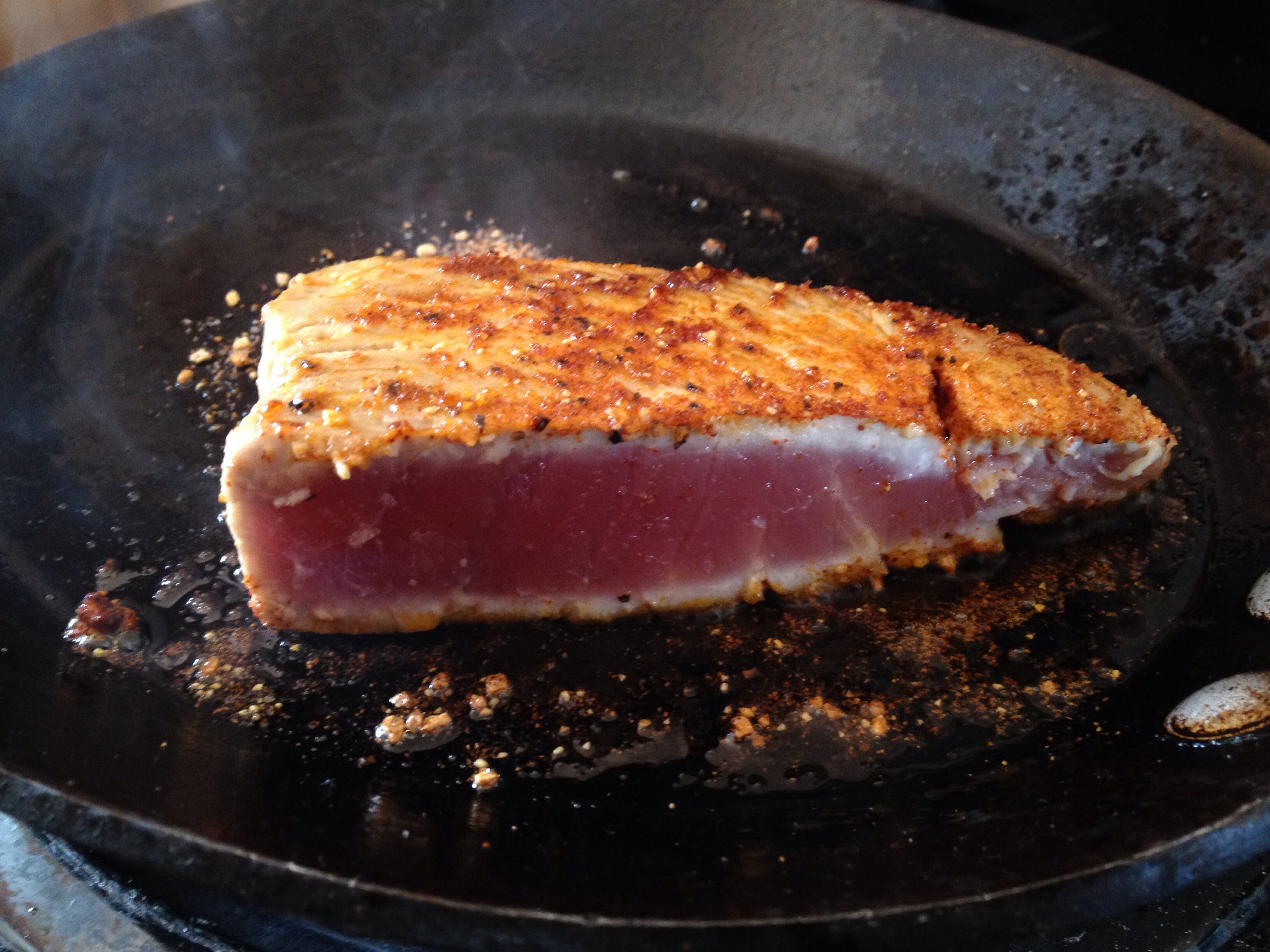 I found the freshest tuna and pan-seared it with blackening seasoning. And, olive oil.