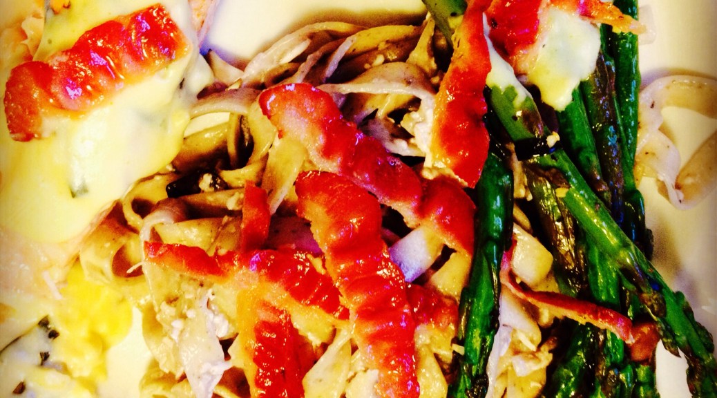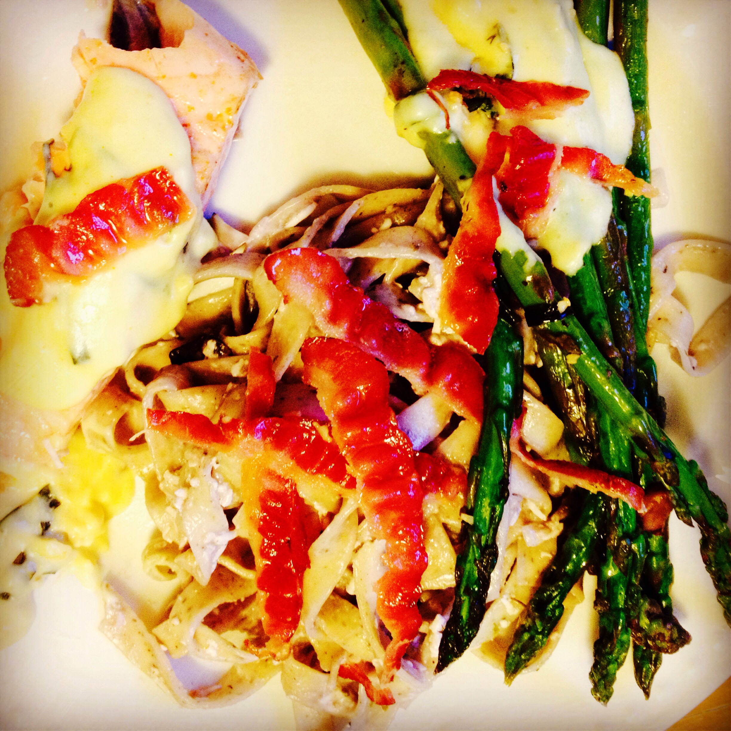 And, with this, I added bacon, avocado, shiitake mushroom and pear Gorgonzola vinaigrette.