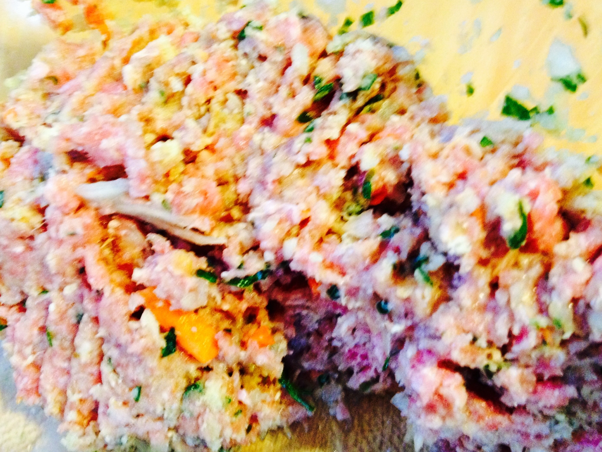 2. When blending the ground meat and ingredients, we added finely chopped garlic and parsely, and
