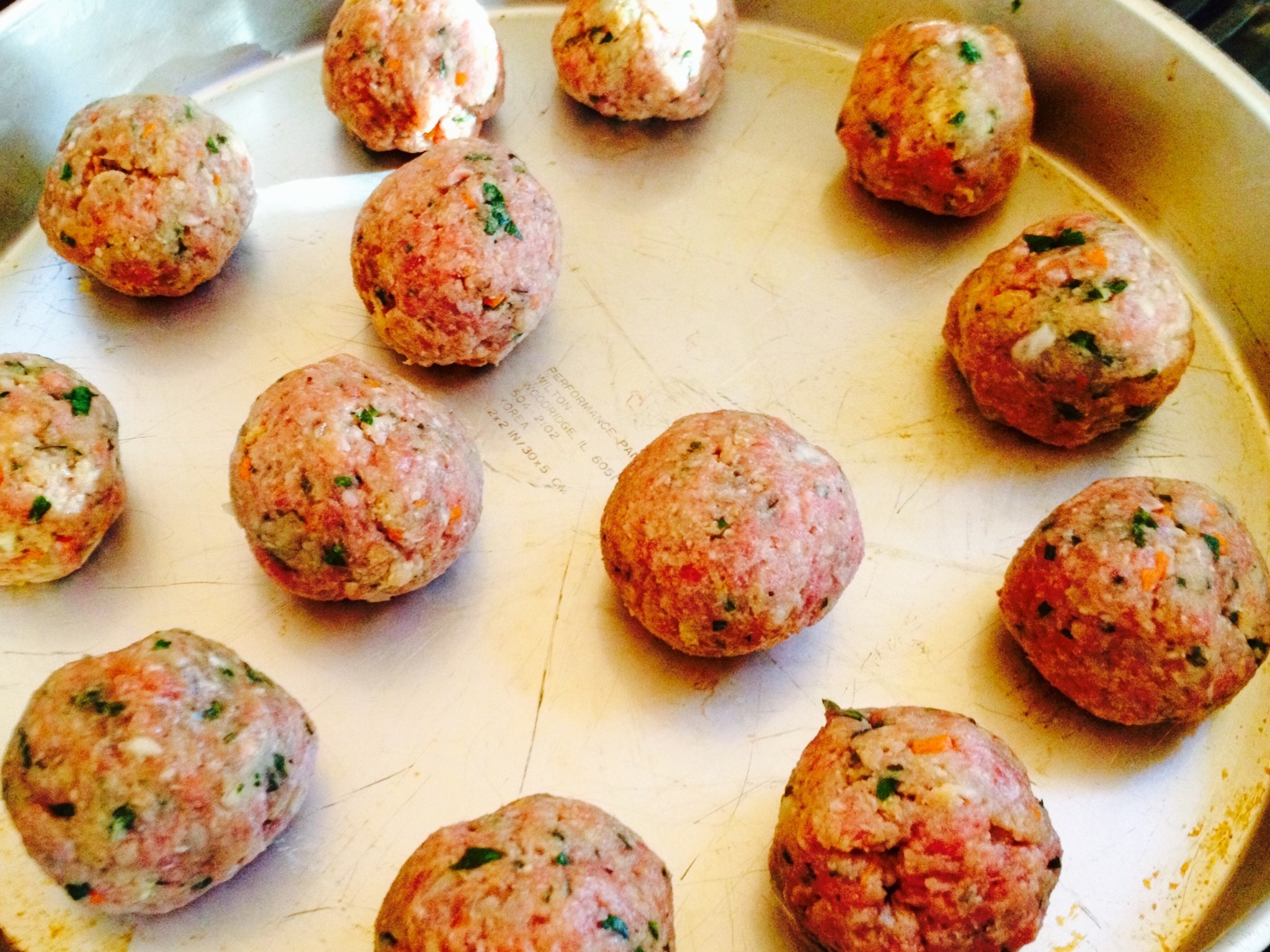 Our meatballs stuck a little to our baking pan, this could have been avoided with a little cooking spray, and perhaps rolling our meatballs around once during cooking to allow for even results :^)