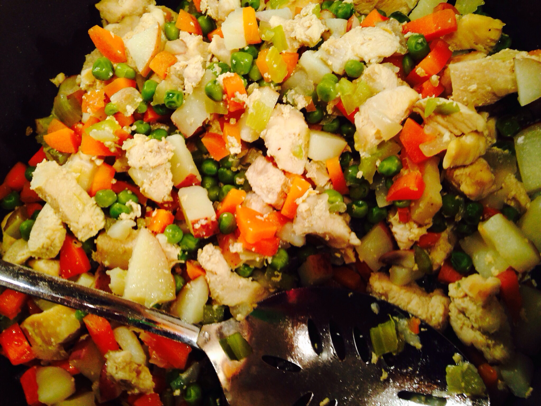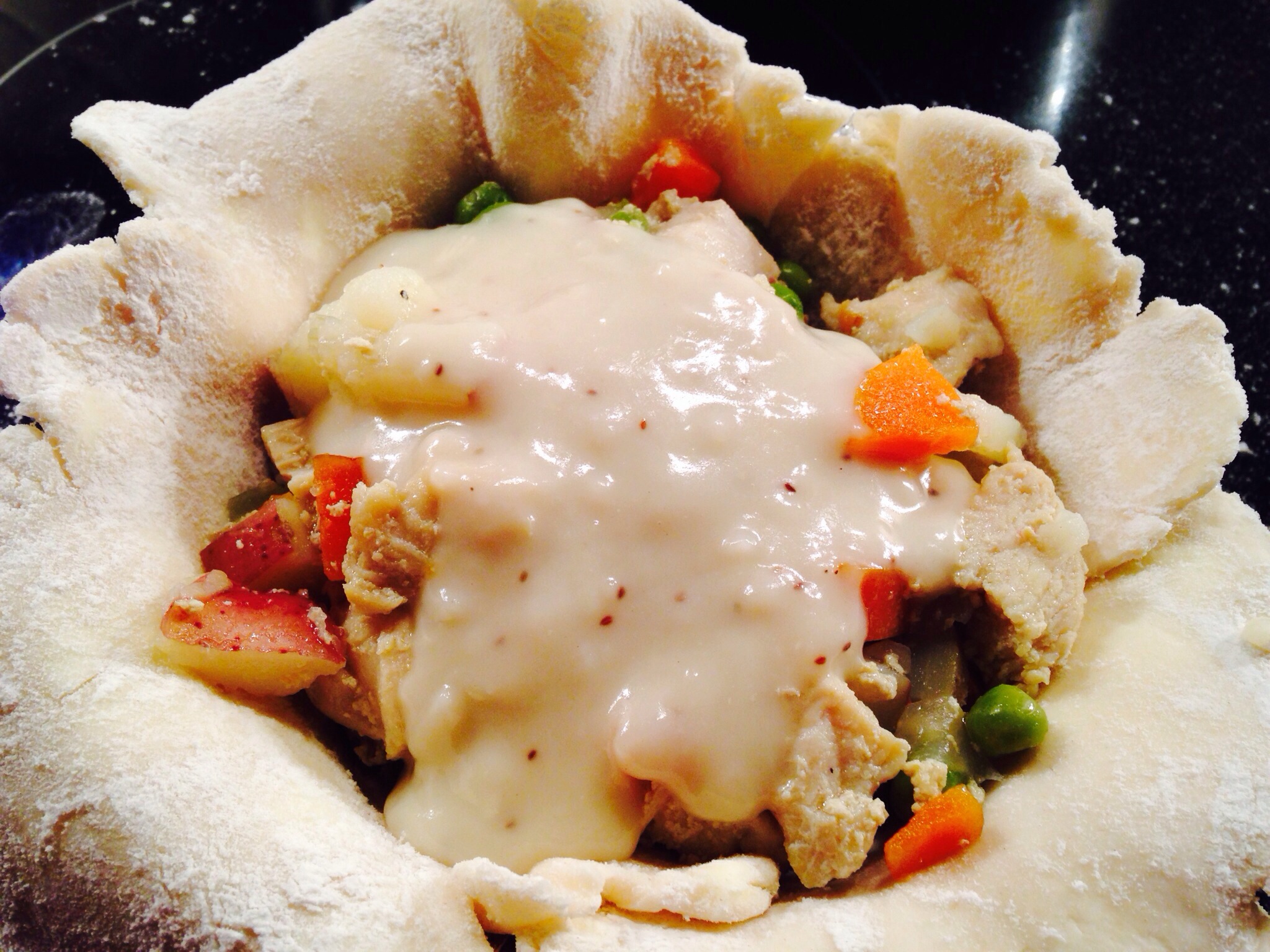 Shelley, inspired by my pie crust, suggested chicken pot pie as a perfect use for my crumbly crusty, so in turn I was inspired to create. She and I ran out of time to do this together, so I share this with you and with her — enjoy!! ❤
