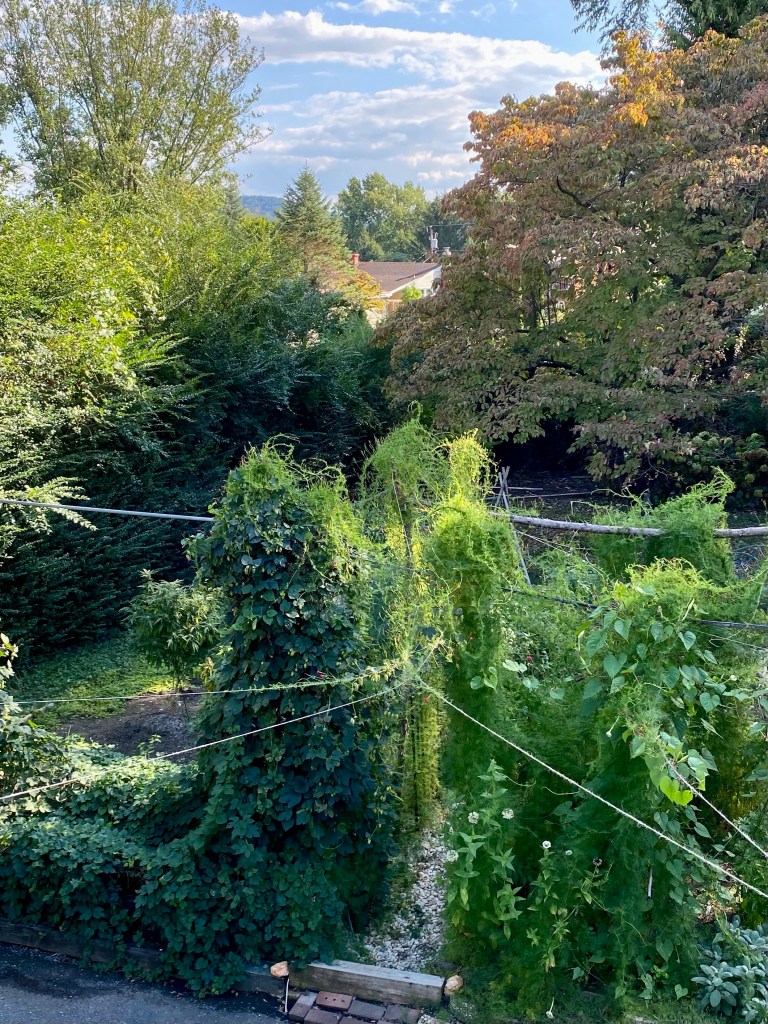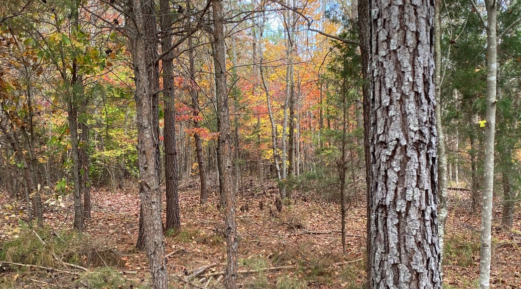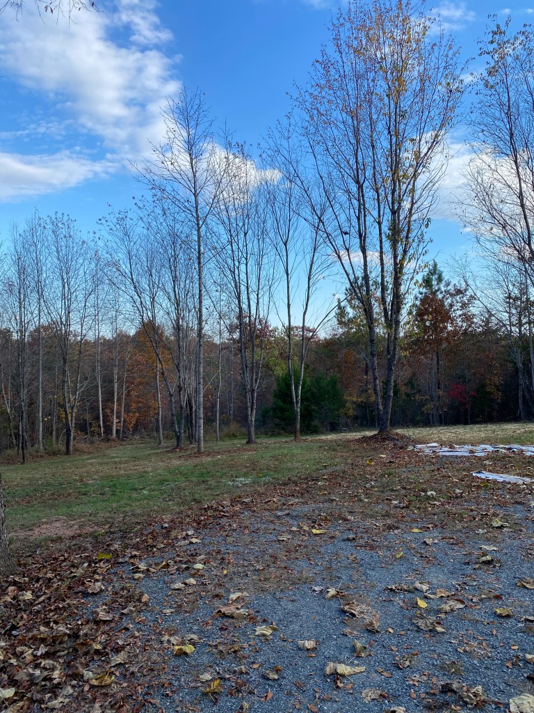 It’s gotten much cooler, even into the mid 30’s at night in Staunton. High 30’s in Buckingham. Brisk! So we’ve had potted up tropical plants to move indoors and onto the front porch in which to enclose them. We’ve frozen plenty of our cherry tomatoes this year and a good bit of our peppers. The garden was very productive as we’d added extra compost before we planted. We also had some rain early on and that helped get us through. At Saint Andrew’s Forest Farm, we are planning what we’ll plant and where. We are observing the wetter areas and watching. Finding sustainable solutions to grow more food and nurture the forest and its inhabitants. We haven’t seen our young bear for weeks, but thought we smelled him by the waterway at the bottom of the slope. We have heard the woodpecker calling and laughing as we get our tasks done.