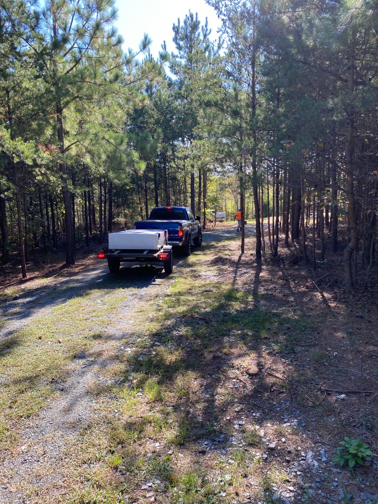 And so has our shed! We will create a compost toilet and shower to make camping feel like glamping inside of this shed. We’ve been busy clearing the site and pouring concrete footers. Don delivered it yesterday from Richmond.