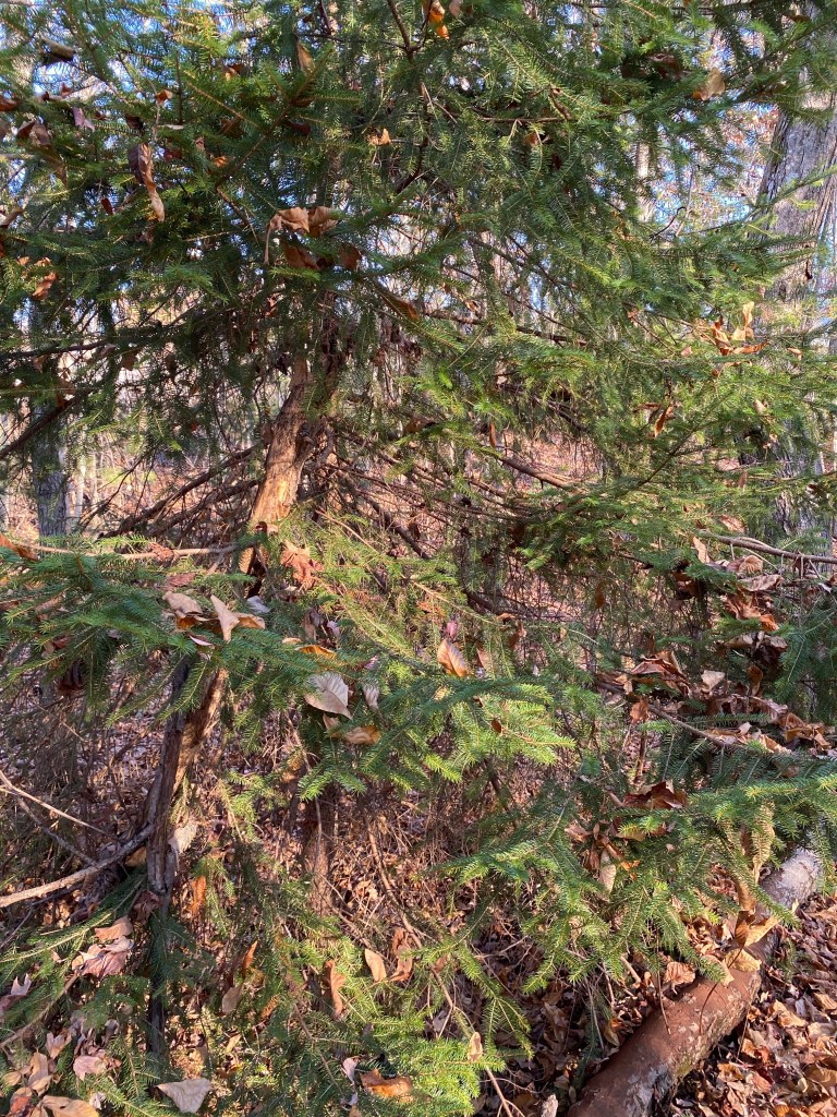 We’ve explored new areas of the forest and expanded our trails each time we’ve gone out. We found new water spots and some new trees. Right now, the beech trees still have coppery leaves hanging on and are easily visible everywhere. We have an enormous beech by the south bottom near the waterway.