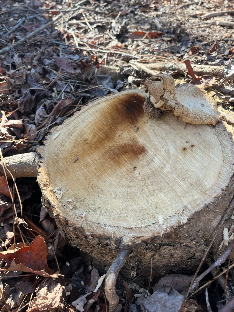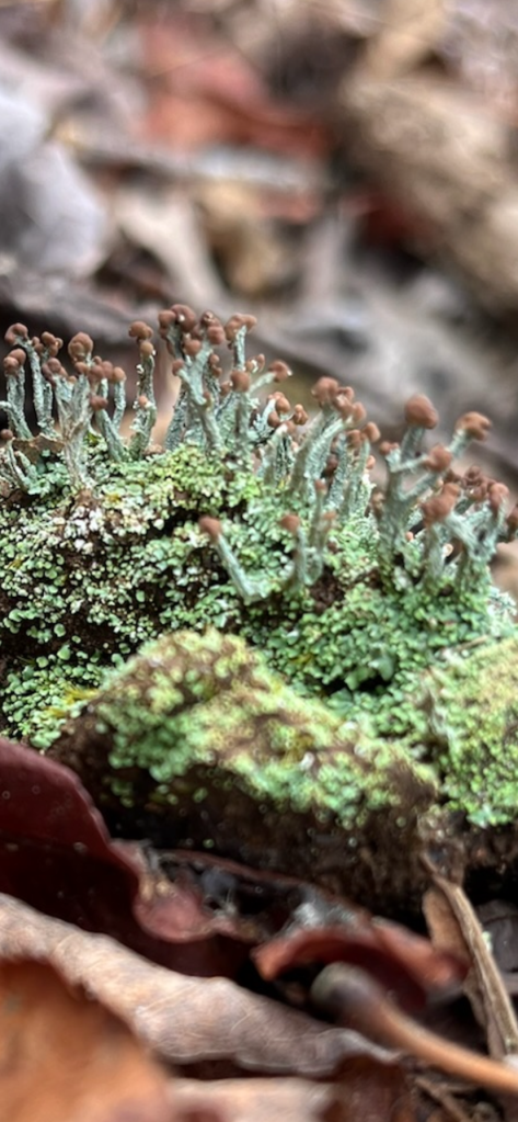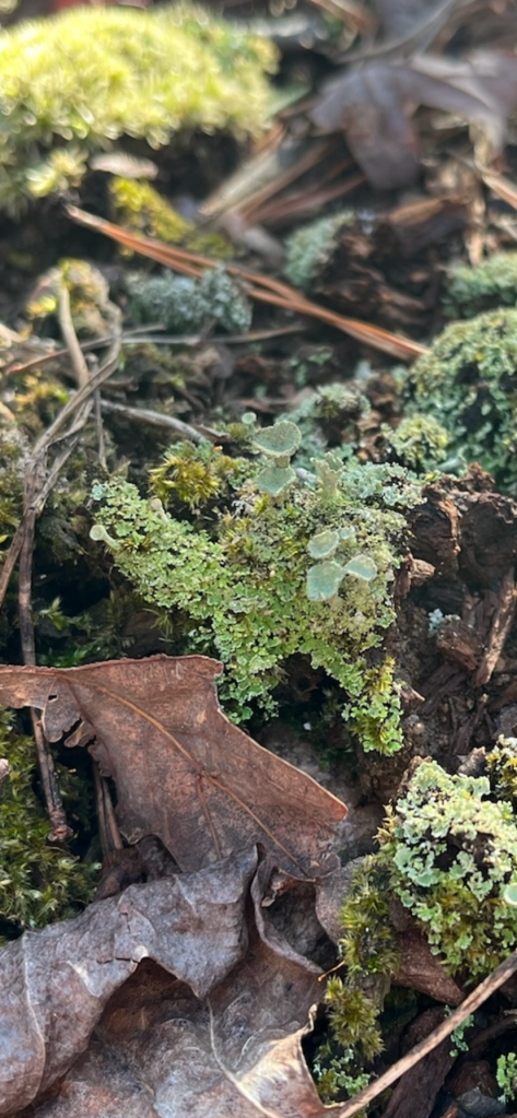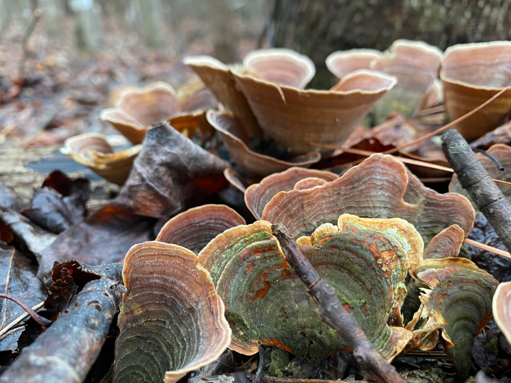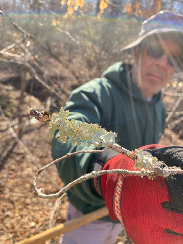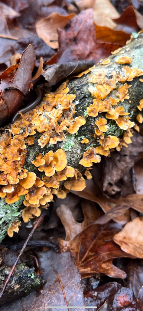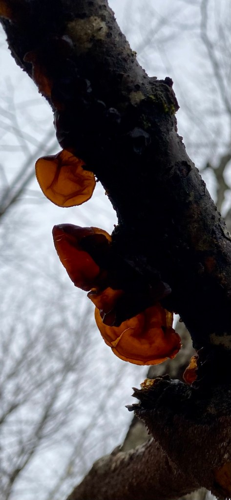 We pulled out vines, found mosses, worts and lichen in abundance. Even in the wintry weather, we found the jelly wood ear and crowded parchment fruiting bodies.