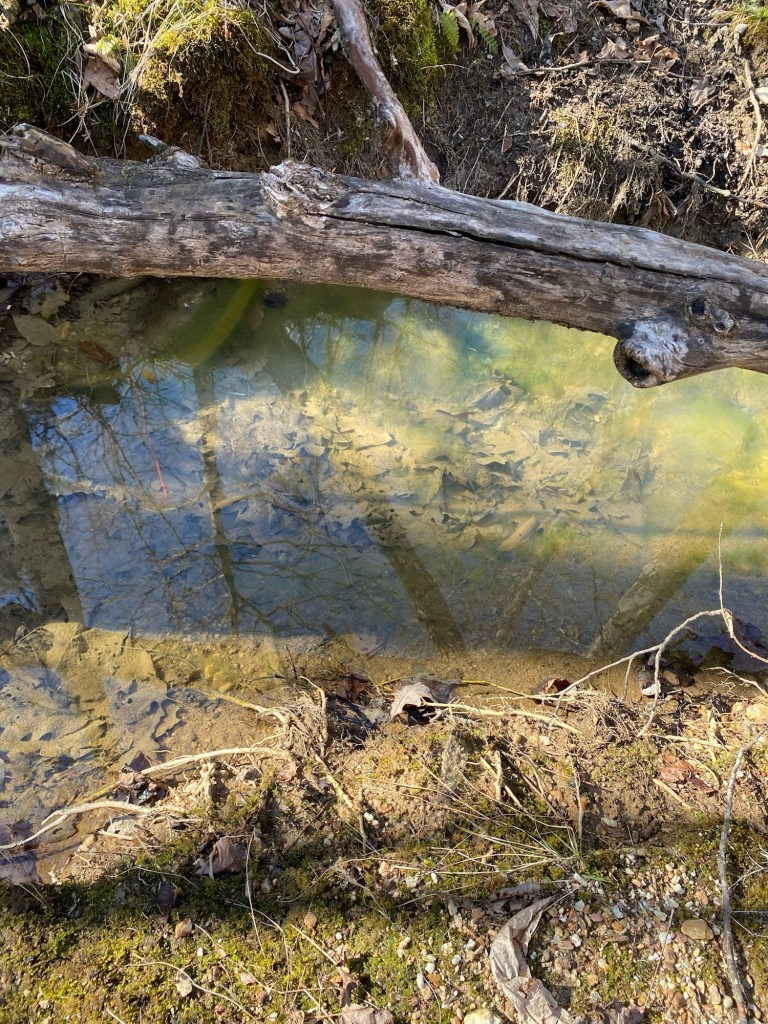 There were a few puddles of water collecting in depressions up top in the clearing.