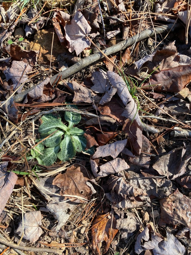 We’re excited to report we’ve almost finished insulating the shed. We cut down a few more black knot infected black cherry trees and some other standing dead trees. We have so much work to do in the forest. The ground was wet and squishy in areas especially down at the bottom of the slope and around the waterway. We found a few more downy rattlesnake orchids. The leaves on the beech trees are showing buds. We went across to look at the waterfalls in the wet weather.