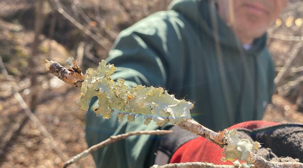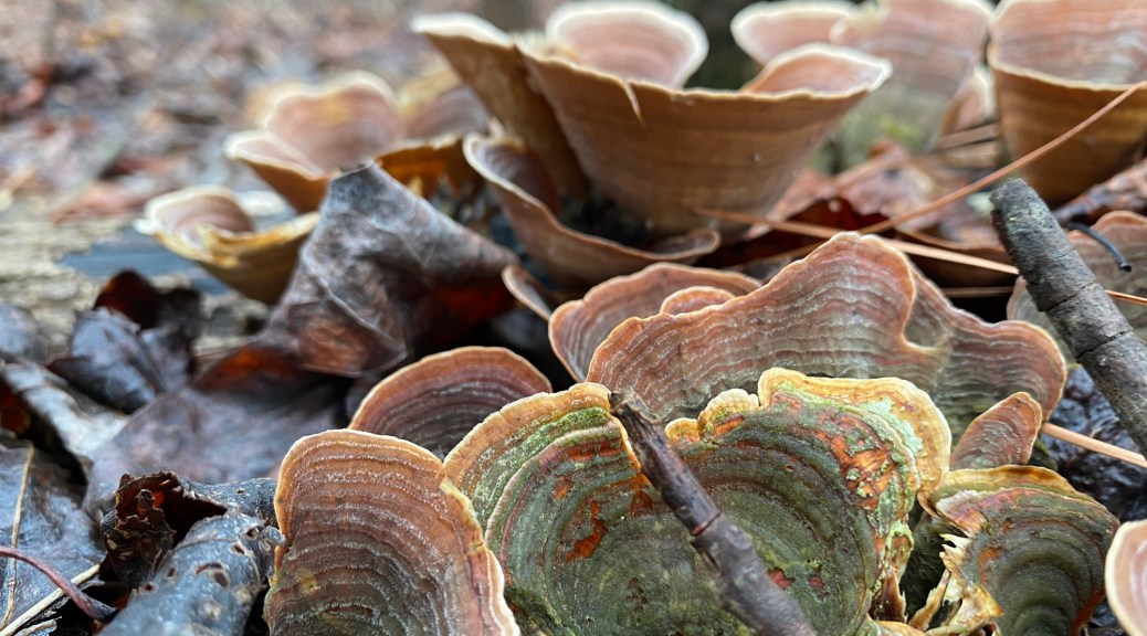 We pulled out vines, found mosses, worts and lichen in abundance. Even in the wintry weather, we found the jelly wood ear and crowded parchment fruiting bodies.