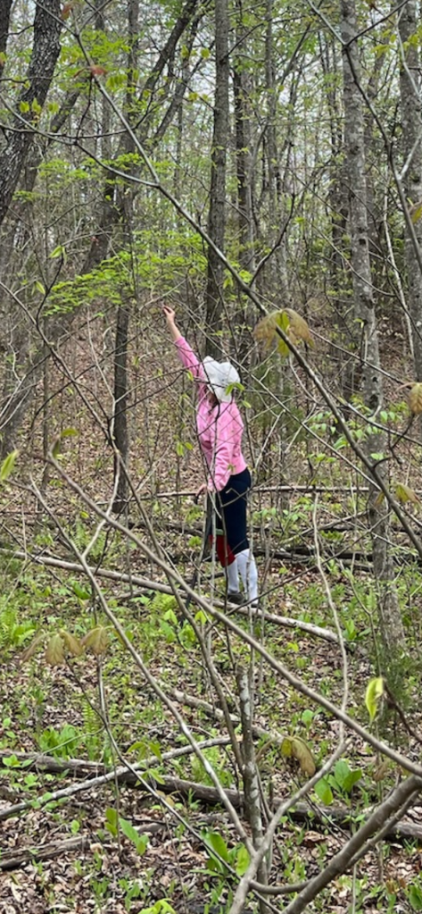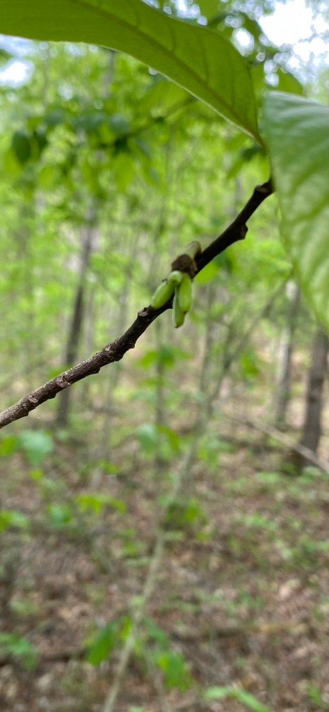 After going out on April 27 (a little over 2 weeks ago) and hand pollinating the pawpaws, we were delighted yesterday to see them beginning to grow the tiniest fruit. About 10 trees have fruit forming so far. These were the trees we found flowering and used Q-tips to pollinate. There are at least 100 pawpaw trees down there. We have plans to bring more sunlight into the pawpaw patch and move some of the pawpaws to spread them out. We are beyond excited for these fruits and can’t wait until fall to harvest them. We hope to grow our population of pawpaws and increase their productivity.