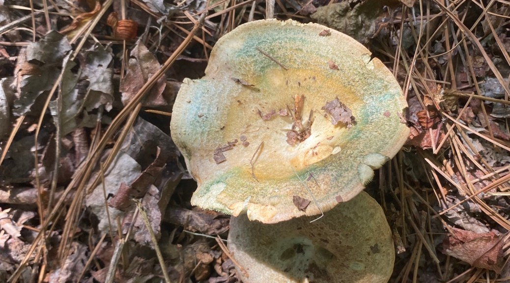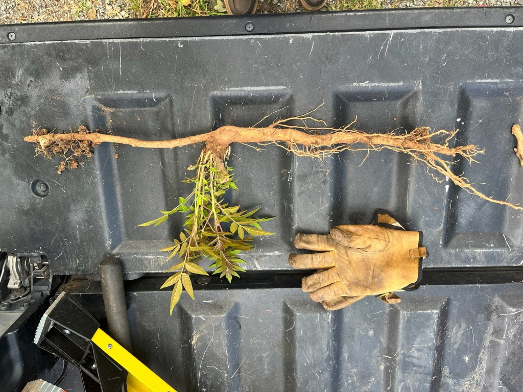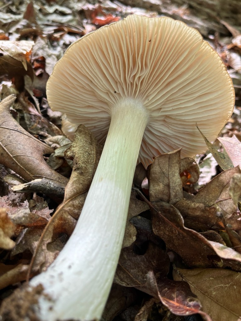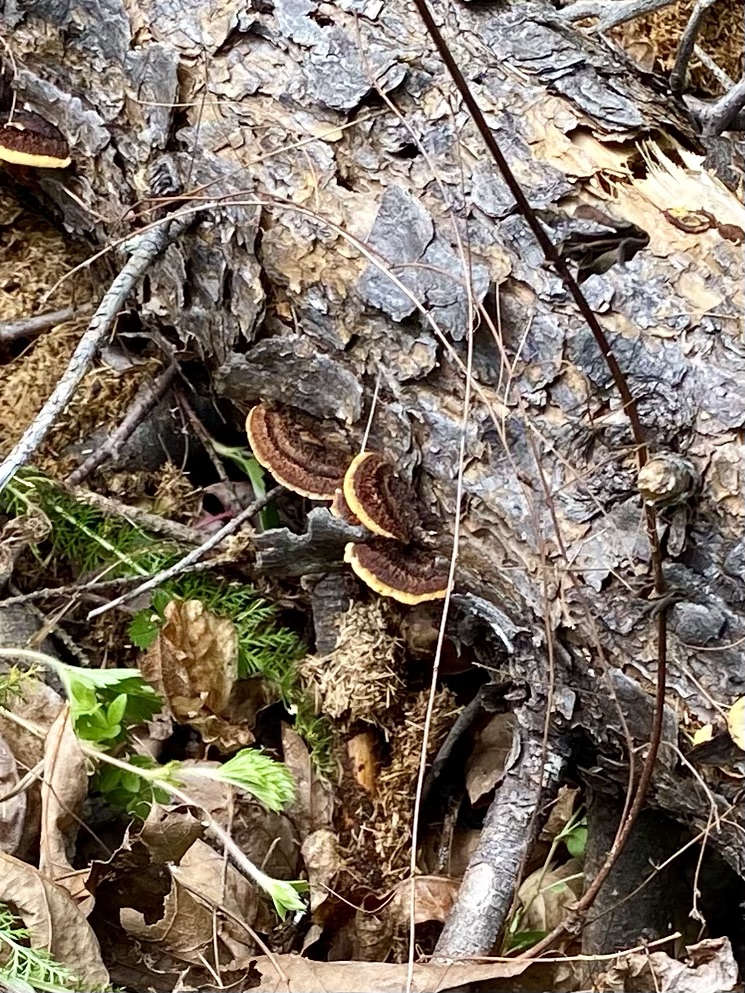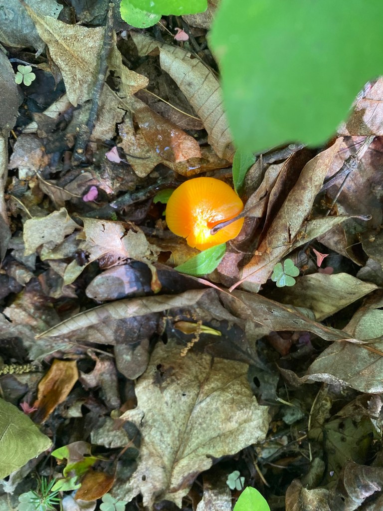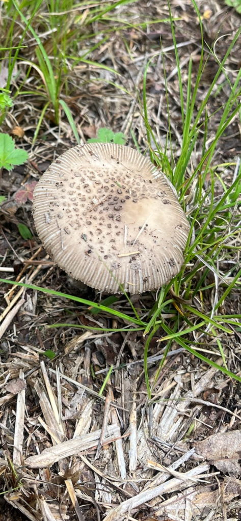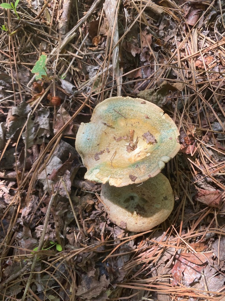 One of our first Bolete edulis mushrooms, common names the Cep, porcini, king bolete or penny bun, a most sought after edible. We’d been searching for a year and finally found it yesterday as well as black trumpets. Craterellus fallax, Eastern black trumpet, found along the southern set back line along the forest edge. Near oaks and nestled into moss growing directly from the forest litter. These are particularly difficult to spot as they look like leaf litter. We are so lucky. They looked like round tubes. These are a choice edible and are highly valued. Shoehorn oyster found along Blackrock trail growing on a stick. Amanita parcivolvata, False Caesar’s Mushroom, we are seeing these all over up top right now. The cutest mushrooms to spot pushing up through the leaves or pine needles with the bright red to orange cap dotted with white. Ailanthus, tree of Heaven, root suckers we’ve been pulling out from wherever we find it on the farm. This is a wonderful example of why to pull out the roots underneath and not mow or cut them since the root will keep growing and sending up more of this invasive tree that chokes out native species. Mowing the south end where we found the first of 5 porcini mushrooms yesterday. 👏🏽