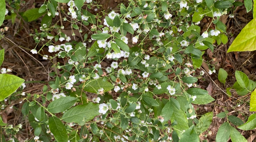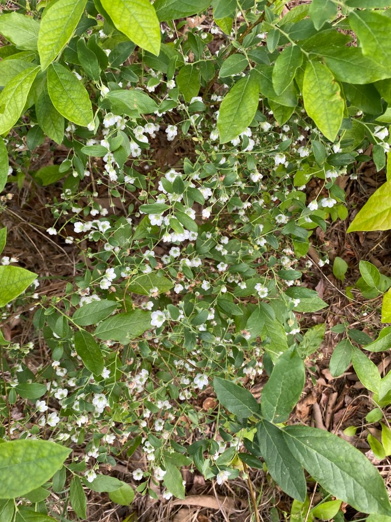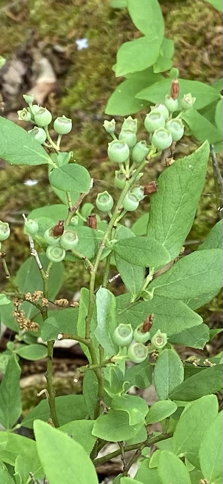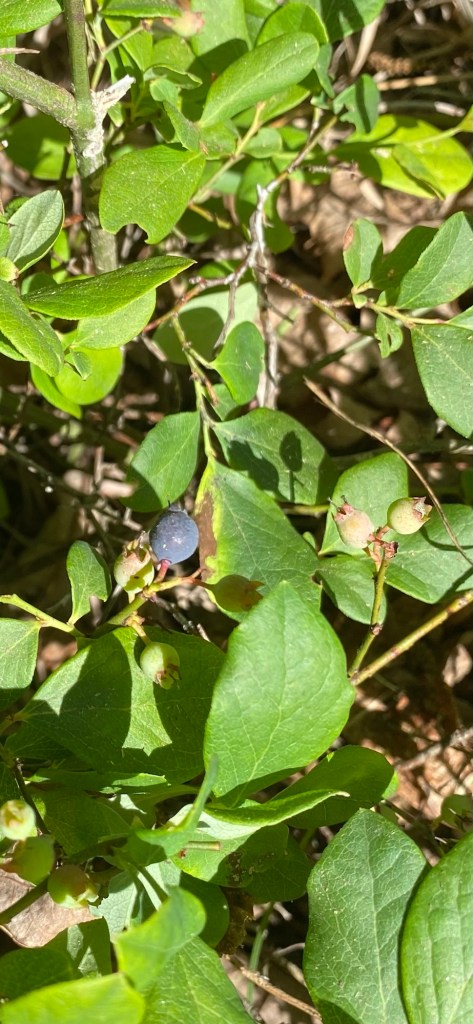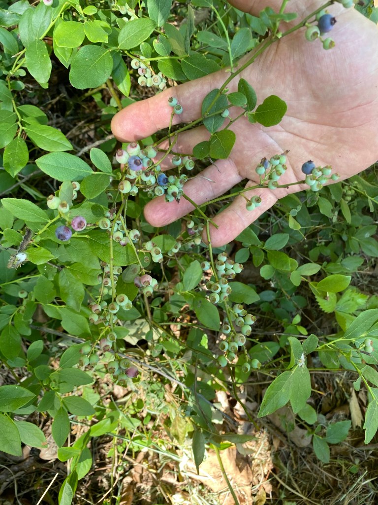 The blueberries continue to develop and we find more and more plants flowering and growing small green blueberries. We hope to taste a few before the animals get to them.