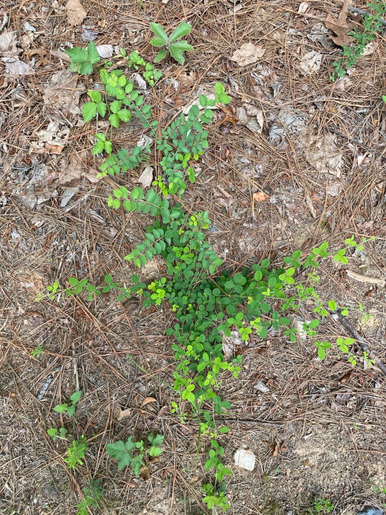 Weeping widow, Lacrymaria lacrymabunda, they are not poisonous but they are bitter. They were a lovely find on the driveway up top. Fly agaric, Amanita muscaria, found along the edges of the clearing up top. They arose from a volva, an egg at the base of the stem. We saw them last year and were waiting for them to come back. Similar to the Lactarius indigo, this is Calendine milk cap. Found at the top of North trail. It had a blue yellow sheen on the cap with yellow gills. The gills did not lactate when cut. We have so many Russulas. It’s delightful.Lespedeza procumbens, trailing lespedeza, a native perennial which is a legume, so nitrogen fixing. Found throughout the farm. Hygrocybe conica along North Trail. These were brilliantly colored on the forest floor. Hygrocybe flavescens, Golden waxy cap, at the bottom of North Trail as it reaches the waterway, we found this beauty. Entoloma strictius, were tall, straight and golden, arising directly out of the forest litter along North trail. They appear to have a pink spore print, and the ridge-like gills turn pink as they age. The Pawpaw Orchard has become a favorite location for us as we clear out small competitors and limb up larger trees. We’ve been learning about how to successfully transplant papaws and we’re working on a long term strategy to produce fruit and trees in abundance.
