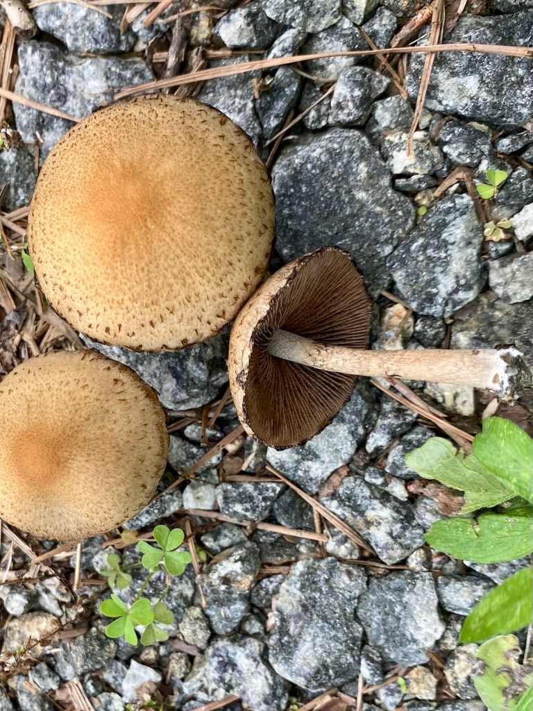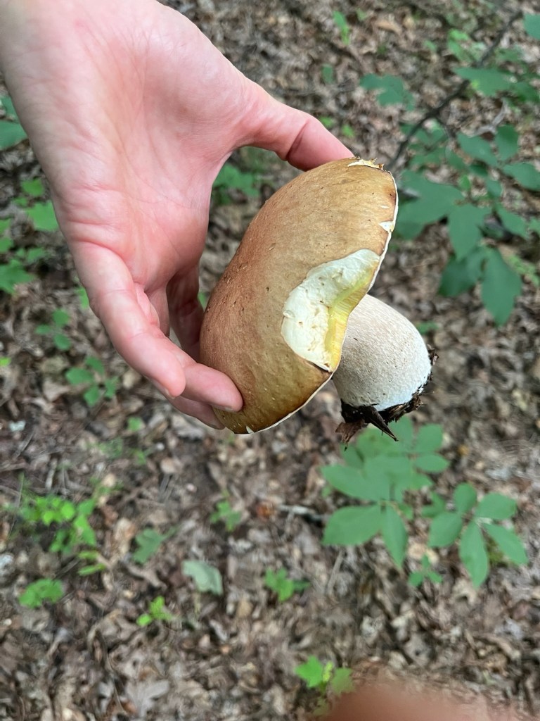 We were out to mow and have a work day. It was lovely cooler weather so we got lucky in multiple ways. We mowed the clearing up top, the front along the road and the southern border. Then we went for a little walk and found the mushrooms we’d almost given up hope finding at SAFF. What a wonderful day. We feel like anything is possible if you stay focused and keep going. 😀