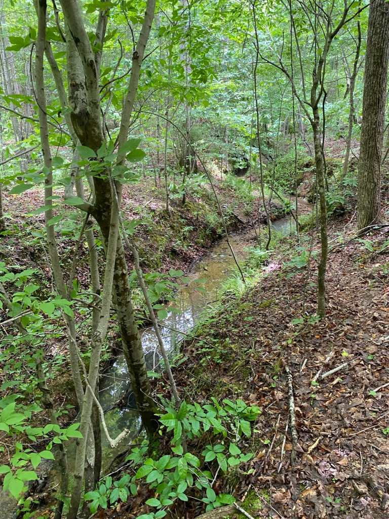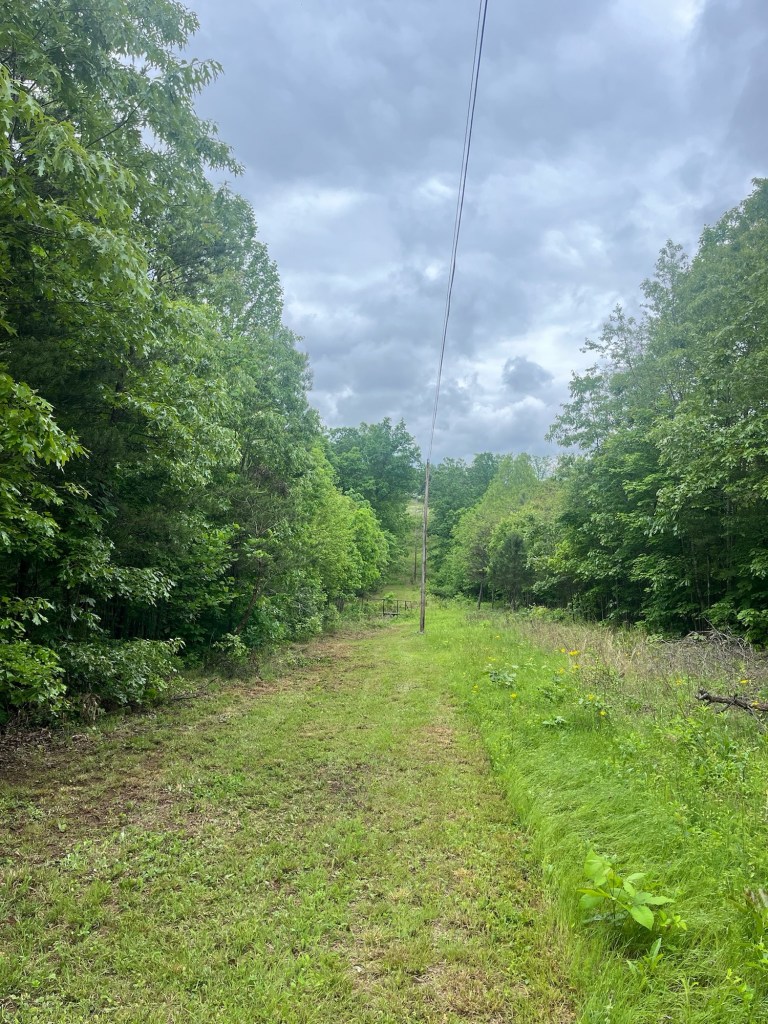 We were going to mow but left our keys to the tractor at the house in Staunton so instead we had a lovely walk around. The ground and forest litter was wet from the storms that have passed through. With the heat, it felt very muggy.