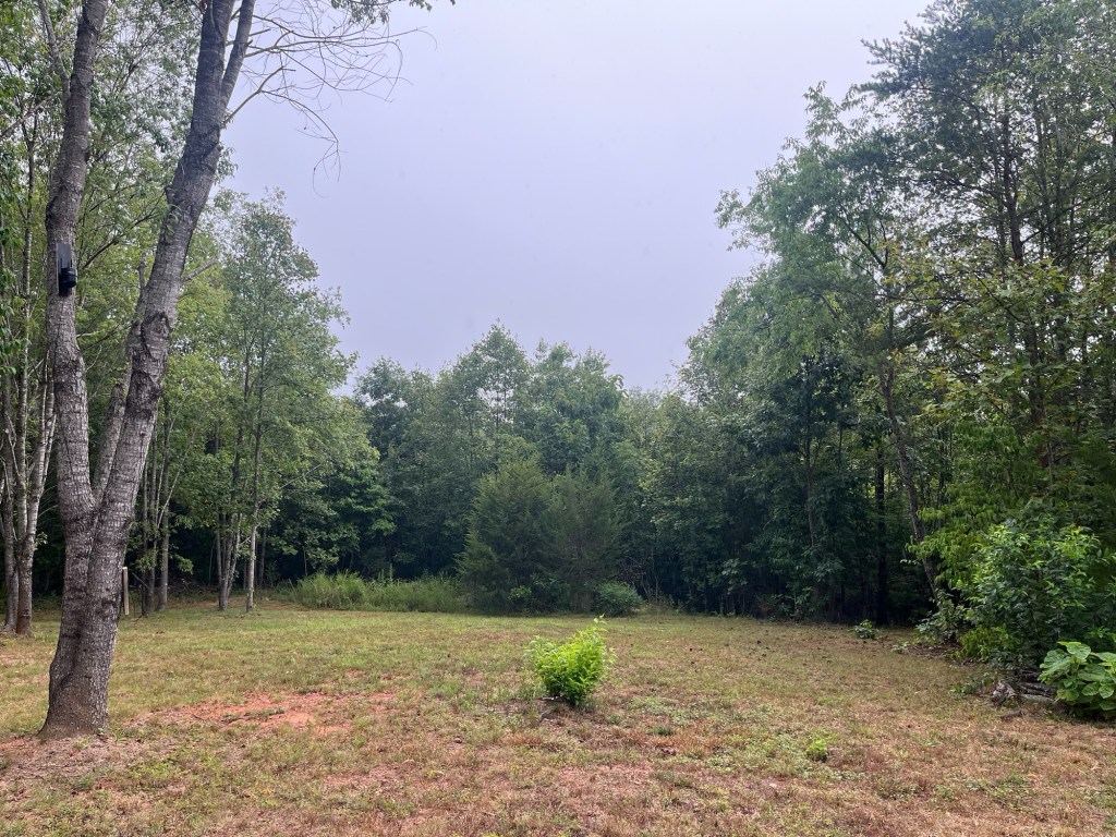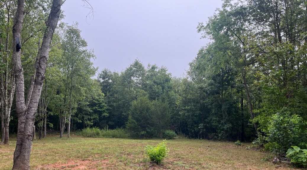 It felt like we had a hundred chores and errands to do on this July Friday afternoon before we could escape to the Farm. It’s been a heavy week in some ways. Getting out of town was like running a maze, the truck was down a quart of oil, we needed to drop some papers off in Charlottesville, and we wanted tacos from our favorite place. We finally arrived at the Farm a little after 3, after setting out around noon. The ground was still dry, but the air was cooler, around 80 degrees and the breeze was refreshing. The last three weeks the hot wind has hit us like a blast furnace. We started our walk up near the entrance and walked through the forest to the South end to check on our blueberries. There hasn’t been enough rain for them to ripen, so they continue to hang in unripe blue-green stasis. The grass hasn’t grown much with the persistent drought, and we didn’t even see a tick. Ticks thrive in damp conditions, and there hasn’t been any precipitation. We came across a big dung beetle not having much luck trying to get home.