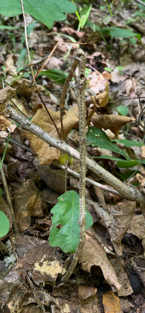We’ve been battling an invasive tree called Ailanthus or tree of Heaven. We found them last summer in three different spots all up top near the main clearing and by our neighbors to the north. Another name for Ailanthus is Chinese sumac. Differentiation between Ailanthus and our native shining sumac, Rhus copallinum, was a challenge initially with the smaller specimen. However, now we can see the difference between them easily with our practice watching over our forest floor.