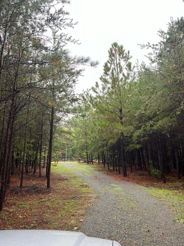 We went out to the northern edge and found where the road began and we cut back small trees growing up through the rocks of the road. We cut back grassy areas. We cleared everything we could easily. We got a third of it cleaned up except for the largest pines we will have to use the chainsaw to remove. We imagined this would take us much longer to clear. We were beyond thrilled to get that much accomplished in one swoop.