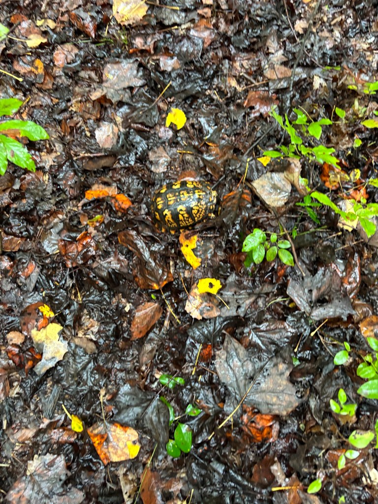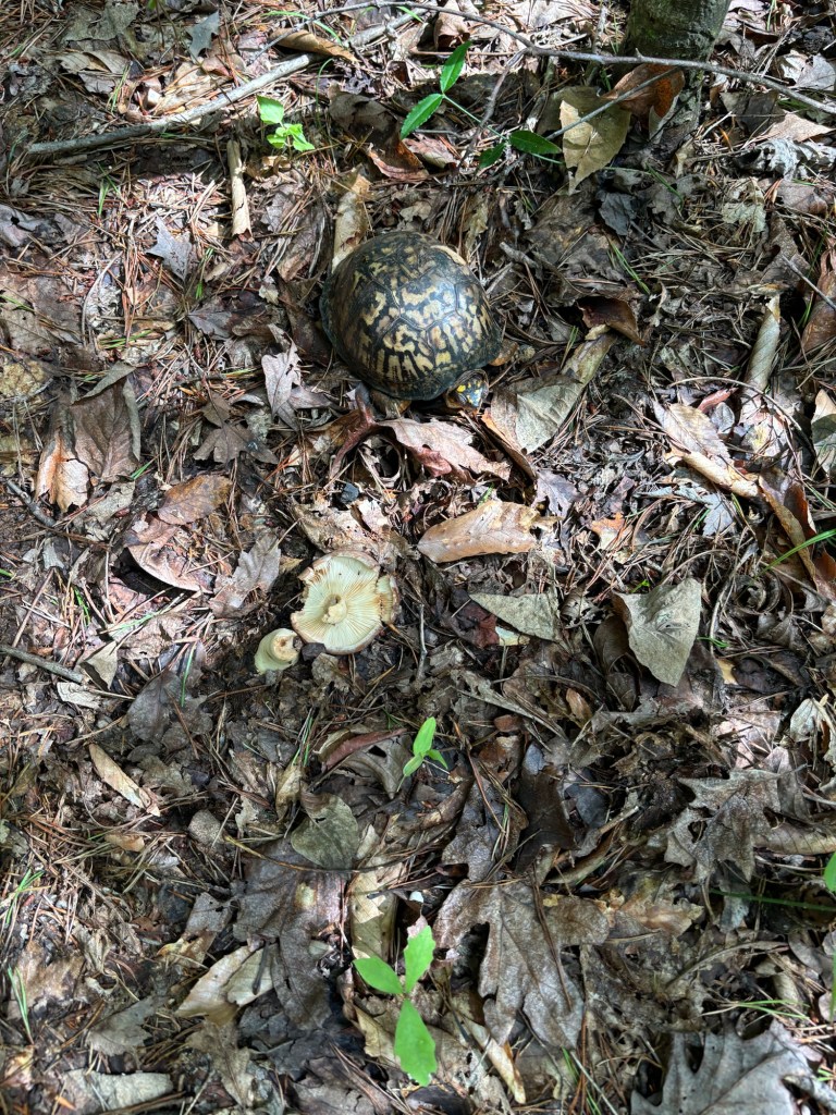 Saprobic fungus thriving with the moisture and temperatures in the perfect range for them to break down forest litter. Stereum complicatum, crowded parchment, growing on multiple stumps and dead hardwood throughout the farm. Chalciporus piperatus, Peppery Bolete, is reported to be edible when thoroughly cooked. It is very peppery so it will spice up a dish. It was a surprise to find a bolete with the weather being cooler. Pawpaws leaves yellowing as part of the trees natural process of going dormant for winter. It makes them very easy to locate right now. We found a few more clusters of pawpaws near the wet weather gully on the south side. More pawpaws going dormant for the winter across the waterway. Amanita bisporigera, Eastern North American Destroying Angel, are found in multiple areas of SAFF this fall. These are deadly. Terrapene carolina carolina, Eastern box turtle, on the north side looking for food.Calvatia craniiformis, Brain puffball, found just off the top clearing in a group of seven. Lycogala epidendrum, Wolf’s milk, found at the gate to SAFF. This is a slime mold instead of a fungus.