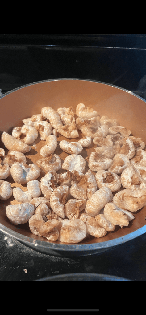 These are delicious treats we sautéed for 25 minutes in a pan with olive oil, garlic, salt and pepper and we had them on our salad for dinner. The texture and appearance is like shrimp and the taste was scrumptious.