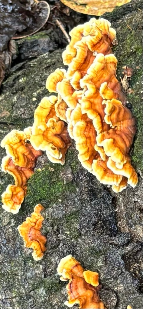 The roadway will make it a whole lot easier to farm on the north side.Turkey tail, Trametes versicolor, on the north side. A common polypore found throughout the world. It’s a medicinal mushroom that’s full of antioxidants and other compounds which fortify our immune system, maintain healthy gut bacteria and support the treatment of certain cancers.
