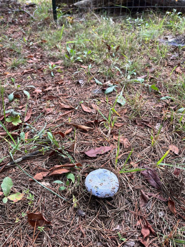 We heard a blue jay calling and following us around the forest. We found this feather. We thought it looked more like an Eastern Blue bird feather than a Blue Jay. Lactarius indigo is a milk cap with blue milky latex that oozes from the tissue when it is cut or broken. It’s edible and tasty. We find it near pines usually. This one is old and bug eaten. Royal Crown bottle found along Three Pine Gully on the north side. Looks to be from the 1930s.