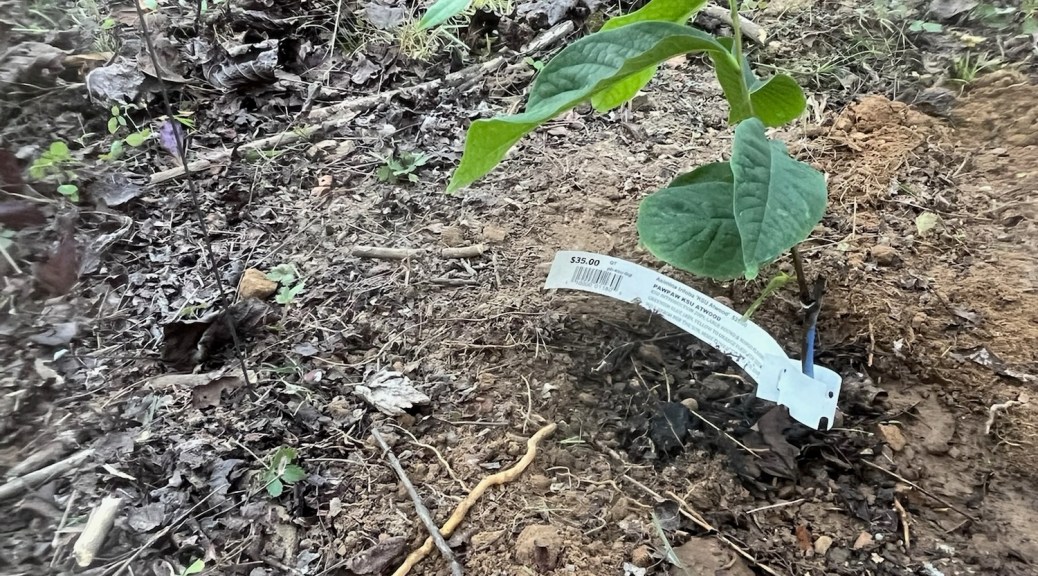 We got out to the farm Friday, Saturday and Sunday. We received the Al Horn White pawpaw cultivar from Perry Pawpaws in Michigan on Friday afternoon and took it out to plant that evening in the orchard at the bottom of North Trail.