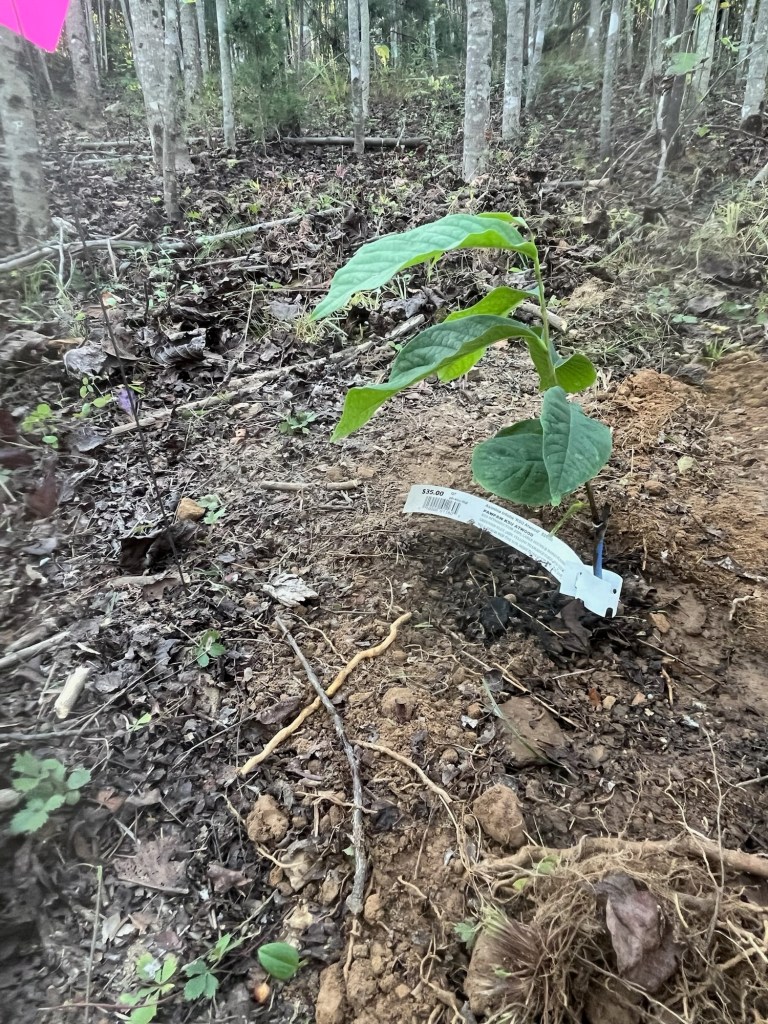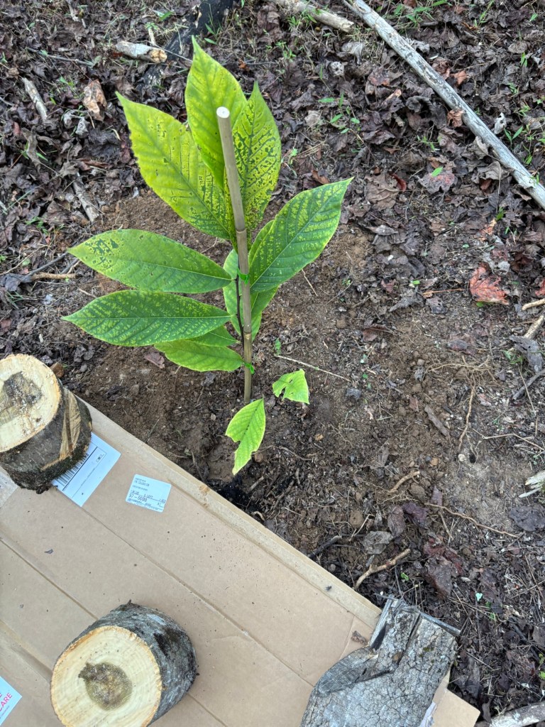 Then, we stopped by Edible Landscaping in Nelson County on the way to the farm Saturday and saw they had $35 cultivars in stock finally. They are small two year grafted trees. We were able to add Kentucky State University (KSU) Benson as well as KSU Atwood to our existing KSU Chappell. They are planted in a triangle and we hope they make beautiful fruit together. KSU has the only full time pawpaw research program in the world. They have done much to better understand pawpaw growth, genetics and orchard management practices. Each of these cultivars are known for resistance to disease, delicious tastes of creamy mango banana flavor as well as being fast growing with high yields. They are each welcome additions to the orchard.