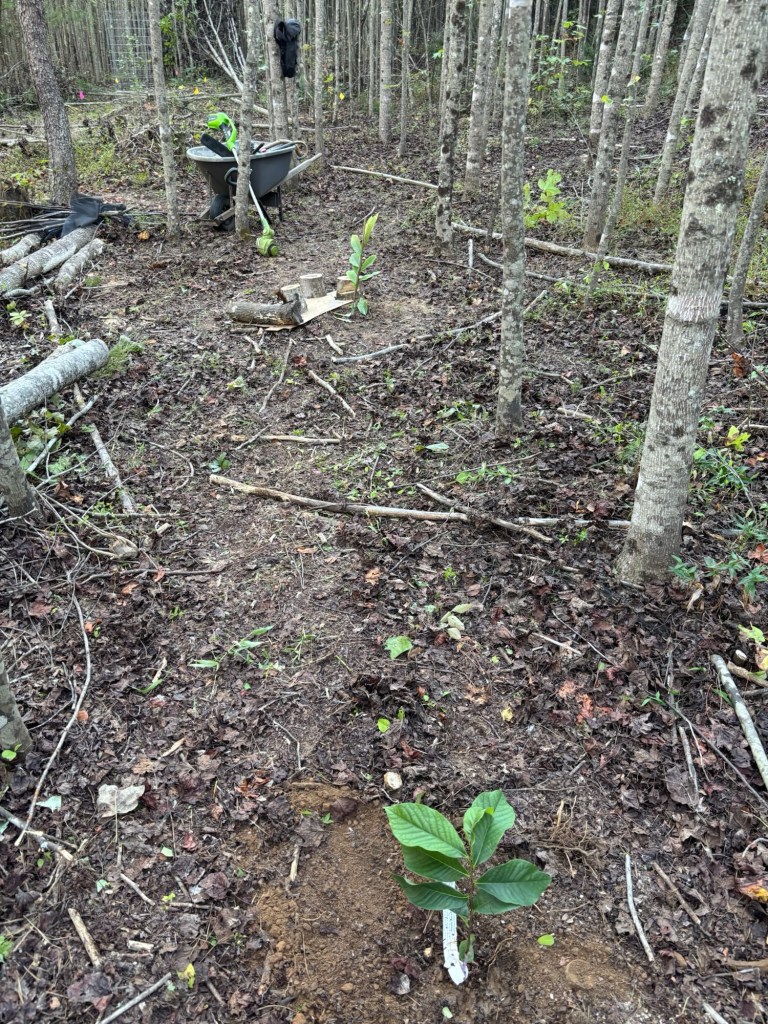 We watered each recently planted pawpaw and made sure they were looking good. We came around the waterway and approached the orchard from south.