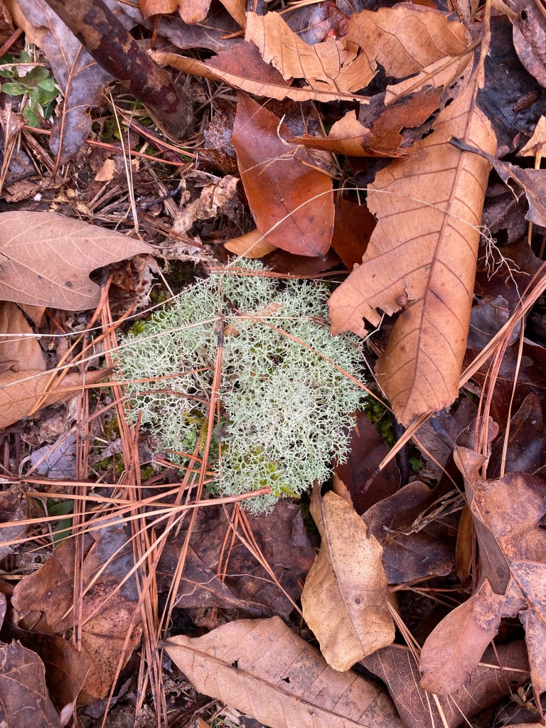 Sea foam in the woods? It’s Reindeer Lichen, Cladonia rangiferina found throughout the forest. This was near the bottom slope by the waterway in a cluster. Moss Yellow stalked puffball found in clearing Several clusters of the yellow stalked puffball found near several old Earthstars. We have seen them along South Trail as well during the summer after rain. They are michorizal with Oak.Cranefly Orchid leaves. We see clusters of these throughout SAFF. The corms are edible although we have not tried them yet. The flowers in the summertime are delicate and abundantly spread throughout the forest.May be Corticoid sp. Further observation necessary.Lichen and fungus