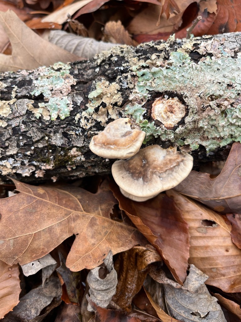 We started at the south side of the property along the road and hung signs, cut small and dying trees and laid them along the path perpendicular to the water flow and trailblazed a new path. We wound around along the edge of Saint Andrew’s Forest Farm property line along the power lines. We also followed the waterway at bottom of property to property markers at southwest corner. We found interesting mushrooms, plants and finally found paw paw trees.