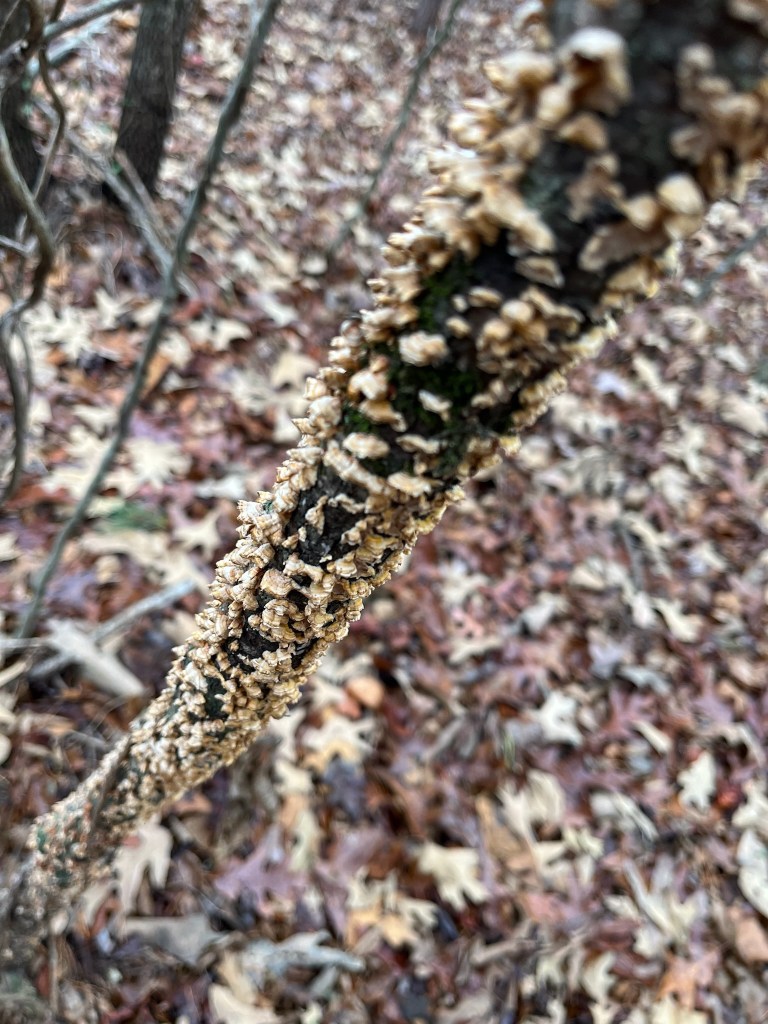 We’ve explored new areas of the forest and expanded our trails each time we’ve gone out. We found new water spots and some new trees. Right now, the beech trees still have coppery leaves hanging on and are easily visible everywhere. We have an enormous beech by the south bottom near the waterway.