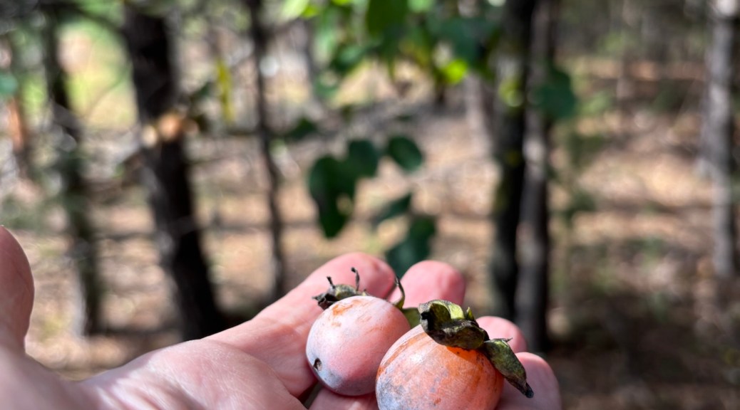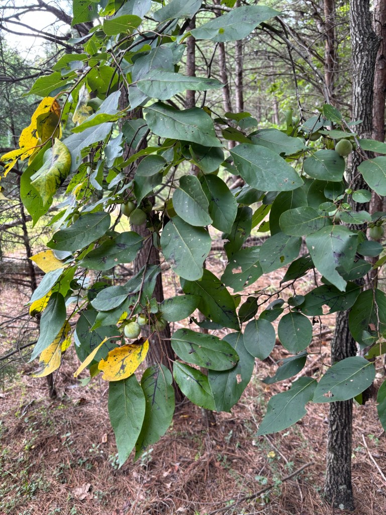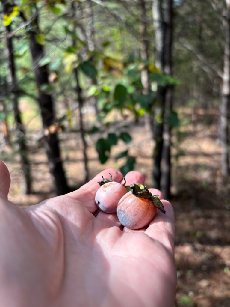 We went over to SAFF on Saturday to take a walk and get some work done. We checked on the persimmons up top and found one ready to eat. Most are still hanging on until after the first frost —which is more than likely tonight as temperatures are supposed to drop to 25F overnight, and flurries are expected. Brrrr!