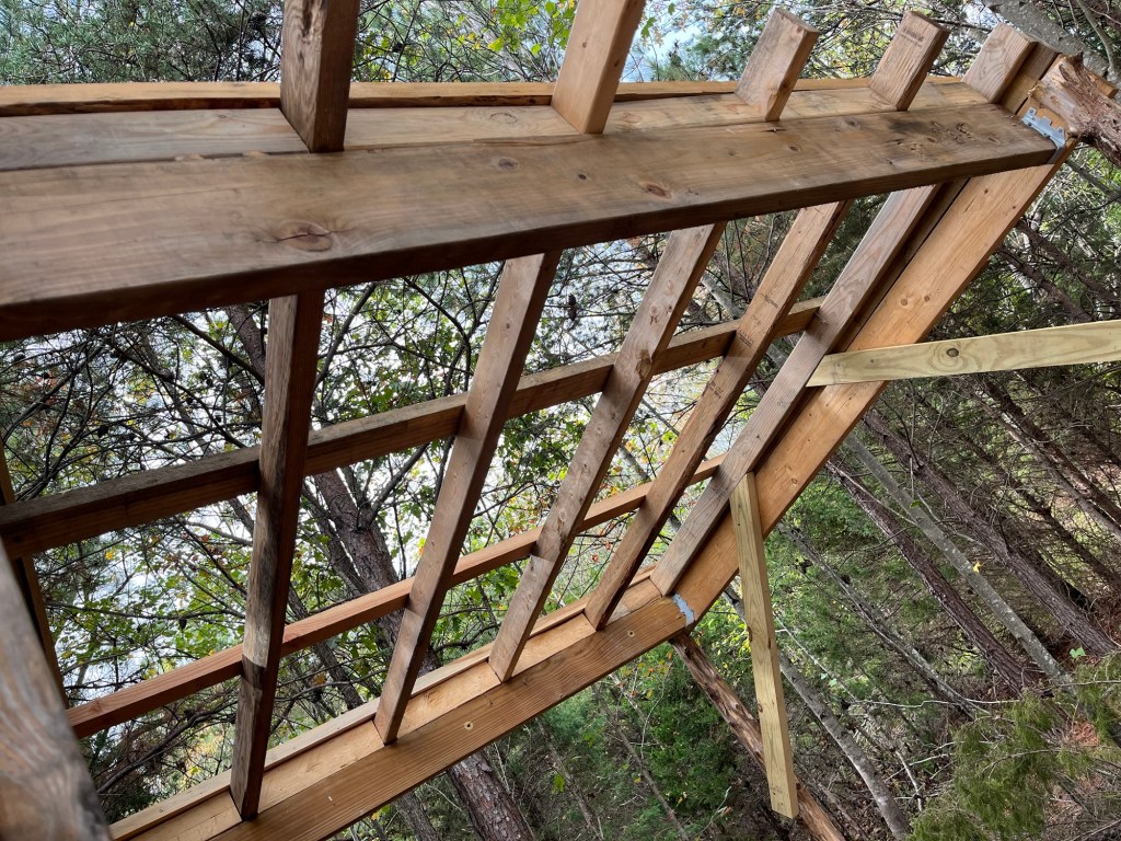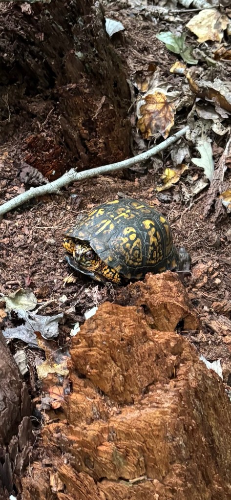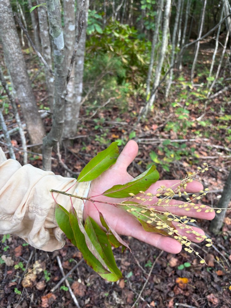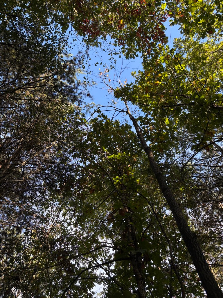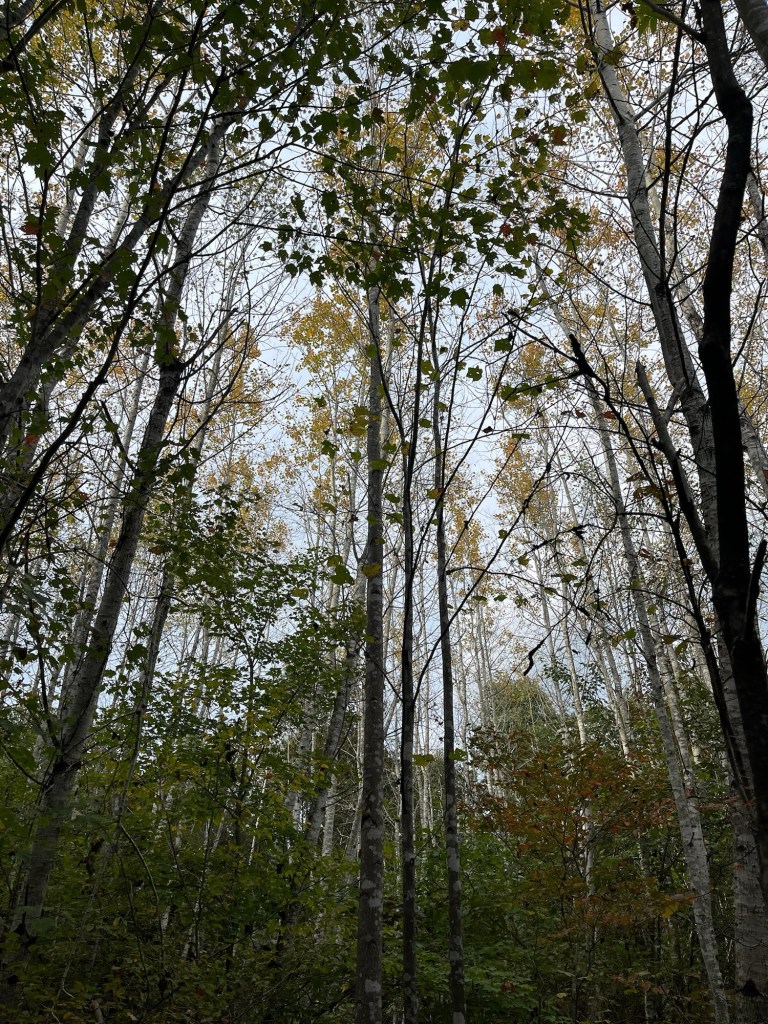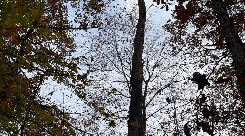 We unloaded the lumber we found at the Restore and checked out the pawpaw and fig trees planted up top. They have yellow leaves and are losing most of them. Then we headed down Red Hawk Road to get down to Fern Trail. We checked out the Rappahanock cultivar and the seedlings planted as well as the cluster of natives. Most have gone fully dormant for the winter, especially the native SAFF trees. A few of the cultivars and seedlings look great; fully leafed and deep green still. Gleaming. It’s more typical for them with the temperature and season to be dormant. We have not yet had a hard freeze in Buckingham, or in Staunton in the Valley—which usually frosts first. Once dormant, their watering needs will drop. Phew! 😅
