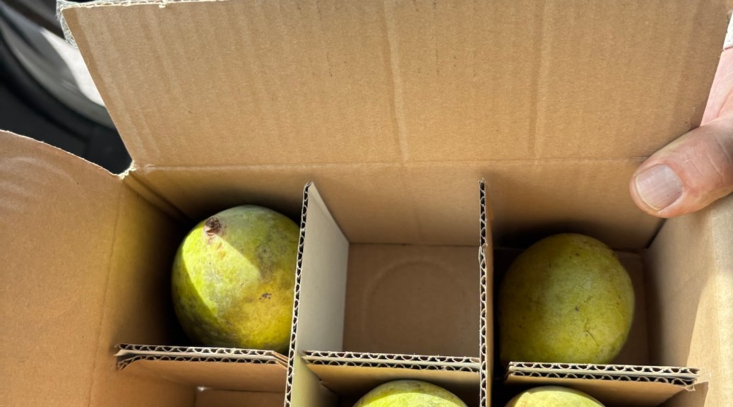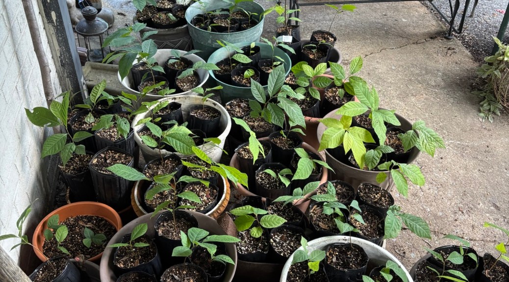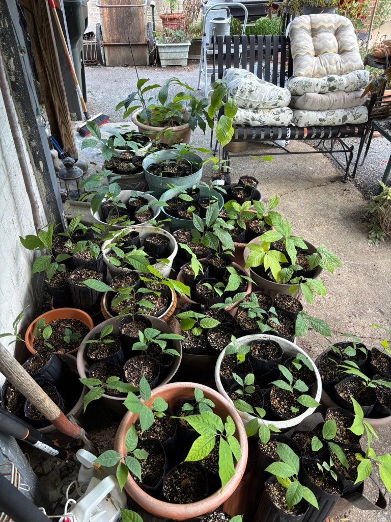 The 180-200 seeds we collected from pawpaws last summer (primarily from the Sunflower cultivar at Edible Landscaping in Afton, Virginia because the late frost that melted off the flowers at all of our other foraging spots) have stratified and we will pot those up in June to plant in the ground at SAFF in the Fall of this year. We are eyeing some of the local master gardening sales and the Hahn Horticultural Garden sales (April 9th) coming up this spring for more opportunities to collect seeds and trees. We plan to also collect pollen specimen from multiple locations around Virginia. We plan to visit Blandy Experimental Farm in Boyce, Virginia to see and collect Virginia pawpaw dna for our SAFF tree project. They have a Mother’s Day Plant Sale on May 9th and 10th. We have been using sammich baggies and qtips 😀 to gently collect dna from the open flowers at SAFF in the old native colony of pawpaws. Last year, and in 2024, we used our SAFF native flowers only to hand-pollinate the trees, but also this year we have our baggies and qtips with us now so we will stop and collect dna from any pawpaws we find with open flowers. We will help the pollinators out while collecting novel dna to bring to our old native SAFF colony. We’ve noticed a lot of bugs gnats and flies in the woods already. Especially down by the main waterway where the old native pawpaws are and the creek has water flowing. We’ve noticed our native colony is usually the last to open its flower buds each year down in its sheltered valley by the waterway. We stopped by Edible Landscaping in Afton Virginia yesterday and they had buds about to open. We will stop over there again this week to check their cultivars and select trees.
