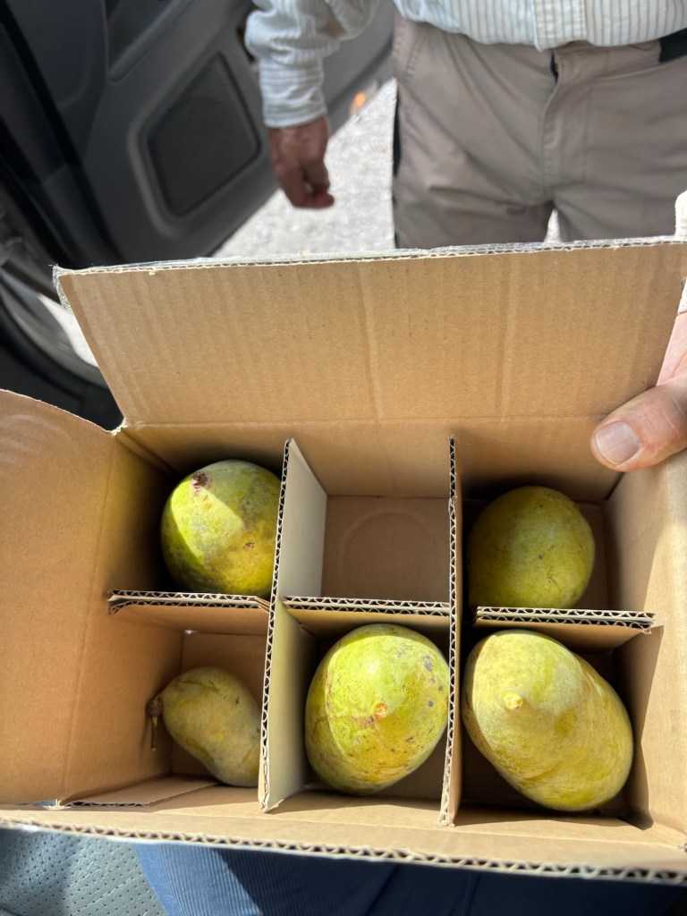 We were able to collect more male pollen to take to SAFF native old colony of clones. We also took compost tea made from our home bin and spread it around the old colony pawpaw patch. So, as Chris said, “we fertilized and we fertilized.”