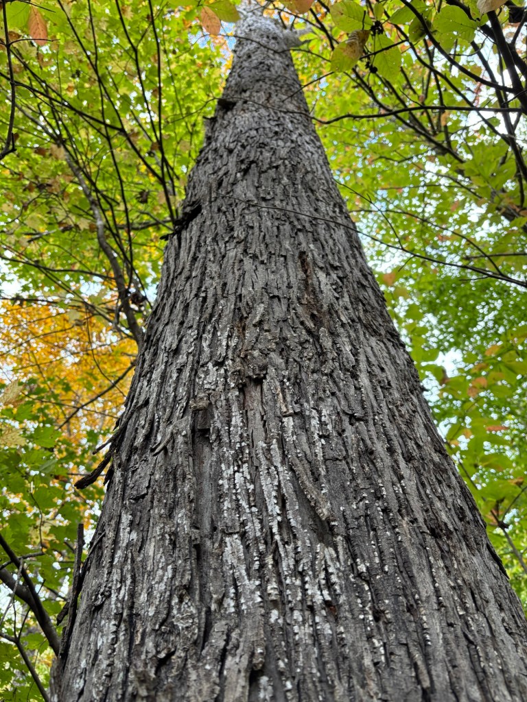 We looked for shagbark hickories to harvest some bark to make shagbark hickory syrup.