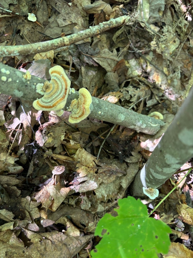 We were going to mow but left our keys to the tractor at the house in Staunton so instead we had a lovely walk around. The ground and forest litter was wet from the storms that have passed through. With the heat, it felt very muggy.
